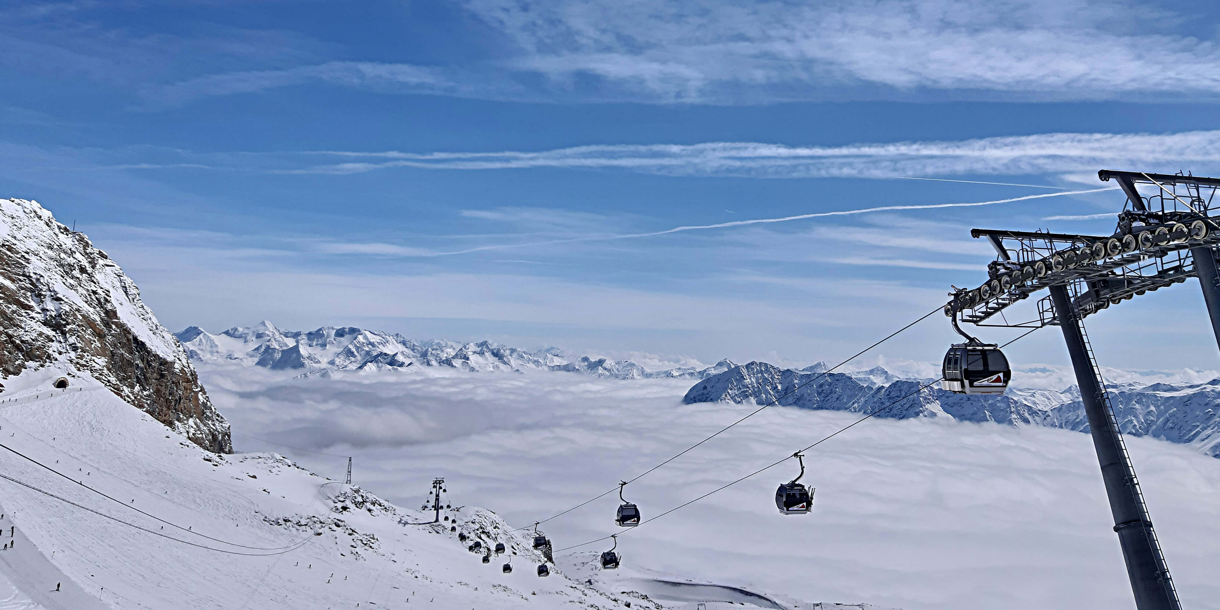 Ohne körperliche Anstrengung genießt man die Fahrt mit der Seilbahn auf den 3058 m hohen Gaislachkogel. Die markante Bergspitze bildet den ersten Gipfel der Sölder BIG3 – 3 Dreitausender mit Aussichtsplattformen. Das 360°-Bergpanorama, das sich dabei eröffnet, ist atemberaubend und einzigartig in Europa!